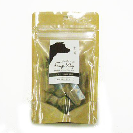 【使用上の注意】 本品はペット専用です。用途をお守りください。幼児、子供、ペットの手の届かない所に保管して下さい。生後2カ月未満のペットには与えないでください。直射日光や高温多湿をさけ、開封後はしっかりとチャックをしめて常温保存してください。水分を含むとフリーズドライの保存性がなくなります。喉に詰まらせないよう、小さく、適度な大きさに割いて与えてくだい。素材そのものを使用しているため、色、形、大きさにバラつきがあります。