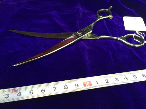 プードルなどシルエットを大切にする犬種に使用します。刃が曲がっているので、はじめは狙った所を切るのが難しいですが、慣れれば大幅に時間短縮が可能な道具です。