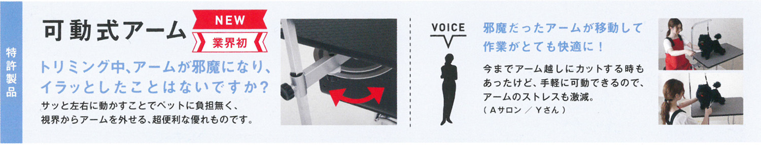 サロンに落ち着いた雰囲気を漂わせる木彫テーブル。嬉しいアームムーブタイプ