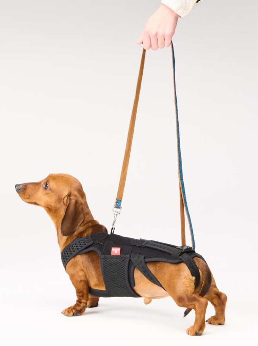 お持ちのリードを取り付けて、ハーネスのように歩行をサポートできます。