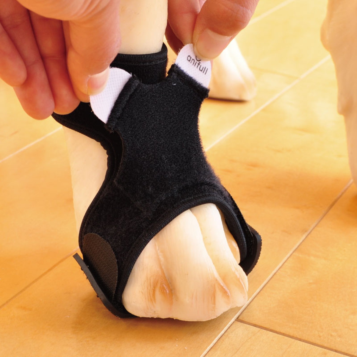 引き上げ補助ベルトを使って、足の甲を引き上げる事ができるので、足裏を地面にしっかり付ける事ができます。 爪を擦る音がし始めたら、ぜひご利用ください。 ※砂利やアスファルトなど使用する路面状況によっては、製品が傷つき破損等の原因となる場合がございます。 使い始めは様子をみながらご使用下さい。 また長時間のご使用はご遠慮下さい。 足の形状によりゴム部と皮膚が擦れ、皮膚が赤くなることがあります。 万が一皮膚に異常がみられた場合は使用を中止し、獣医師にご相談下さい。
