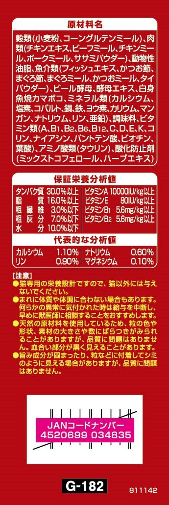 ・お魚味の旨みがしみこんで、深い味わいと香りの良さを実現・ネコちゃんが喜ぶ3種の素材入りアソートタイプ・着色料不使用・全成長段階用総合栄養食・ねこの下部尿路の健康維持に配慮して、マグネシウム量を調整(含有量0.10%:標準値)・おいしさと豊かな風味を逃さない、食べきり小分けパック16g(標準)×10袋