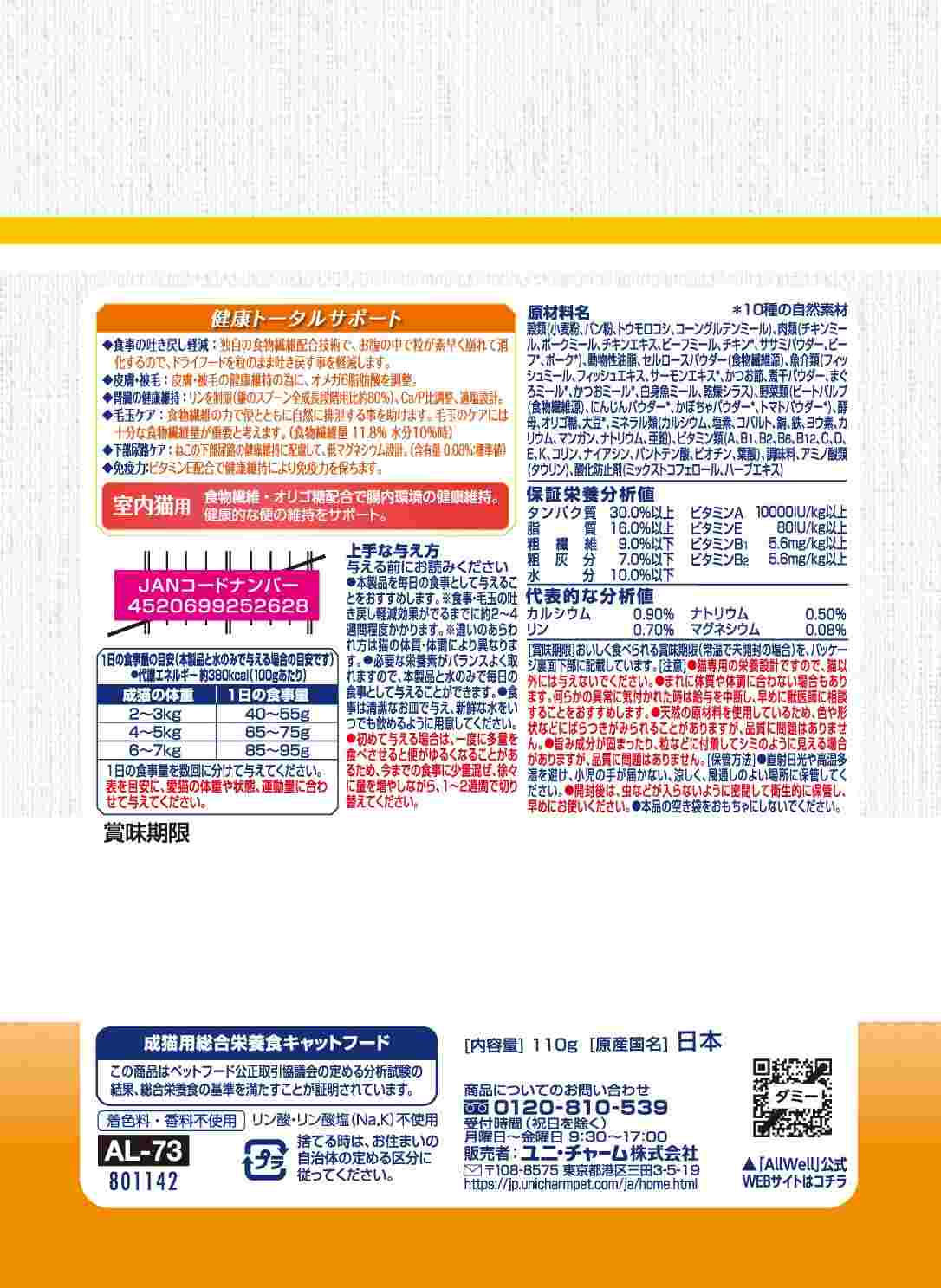 ・食事の吐き戻しを軽減し、10種の自然素材と栄養を! ・10種の自然素材 チキン・ポーク・ビーフ/まぐろ・かつお・サーモン/かぼちゃ・にんじん・トマト/大豆 配合。 ・食物繊維・オリゴ糖配合で腸内環境の健康維持。 健康的な便の維持をサポート。 ・猫が大好きなチキンの旨みが詰まった粒に、挽き小魚をまぶした高い嗜好性
