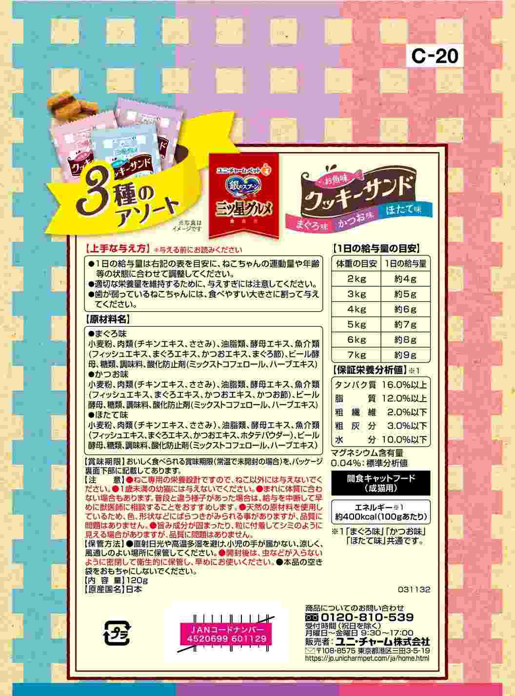 銀のスプーン 三ツ星グルメ おやつお魚味クッキーサンド3種のアソートまぐろ&かつお&ほたて味 120g