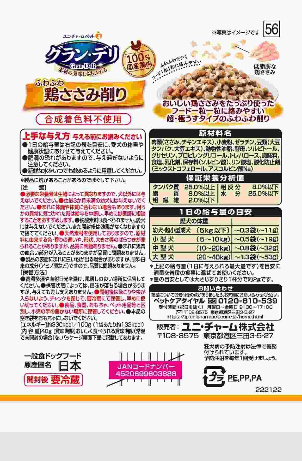 グラン・デリ ふわふわささみ削り成犬用鶏ささみ 40g