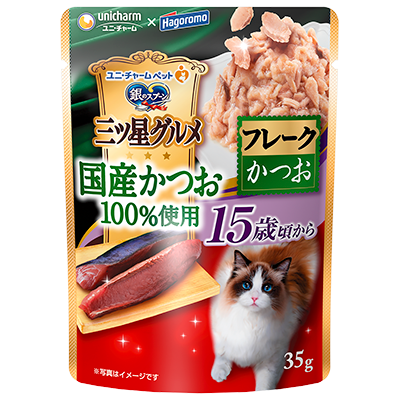 国産かつお100%のフレークを贅沢に使用し、ほたて風味のゼリーでやわらかく仕上げた至福の逸品。
