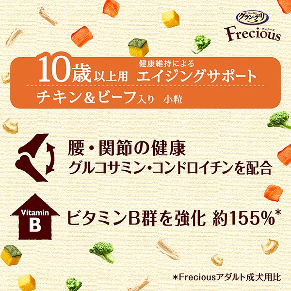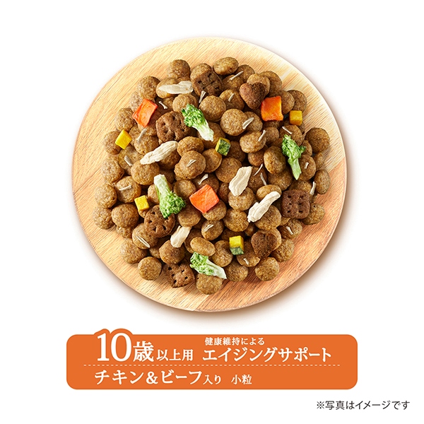 10歳以上の愛犬向けの栄養バランスで、愛犬が大好きなチキン&ビーフ入りです。