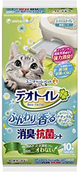 ・1週間分の尿をしっかり吸収し、抗菌剤がニオイを強力に抑えます。 ※愛猫1頭(体重8kgまで)の場合。ウンチをした場合は早く取り除いてください。・銀イオン配合。ニオイ菌99.9%抑制 ※第三者機関による消臭・抗菌シートの抗菌性試験結果。すべての菌を抑制するわけではありません。・マッチング消臭芳香成分で強力消臭・シート表面が白いので、オシッコの色がわかりやすく、チェックしやすい。・シート交換時やオシッコチェックの時も、ふんわり香り、心地よくさわやかな気分になれます。<原材料>ポリオレフィン・ポリエステル不織布、綿状パルプ、吸水紙、高分子吸水材、ポリエチレンフィルム、抗菌剤、ホットメルト接着剤、香料<内容量> 10枚<香り> ナチュラルガーデン≪使用方法≫デオトイレ又はその他のシステムトイレと一緒にお使いください。単品では使用しないでください。また、デオトイレをご使用の場合は必ずデオトイレ専用の消臭・抗菌シートもあわせてご使用下さい。