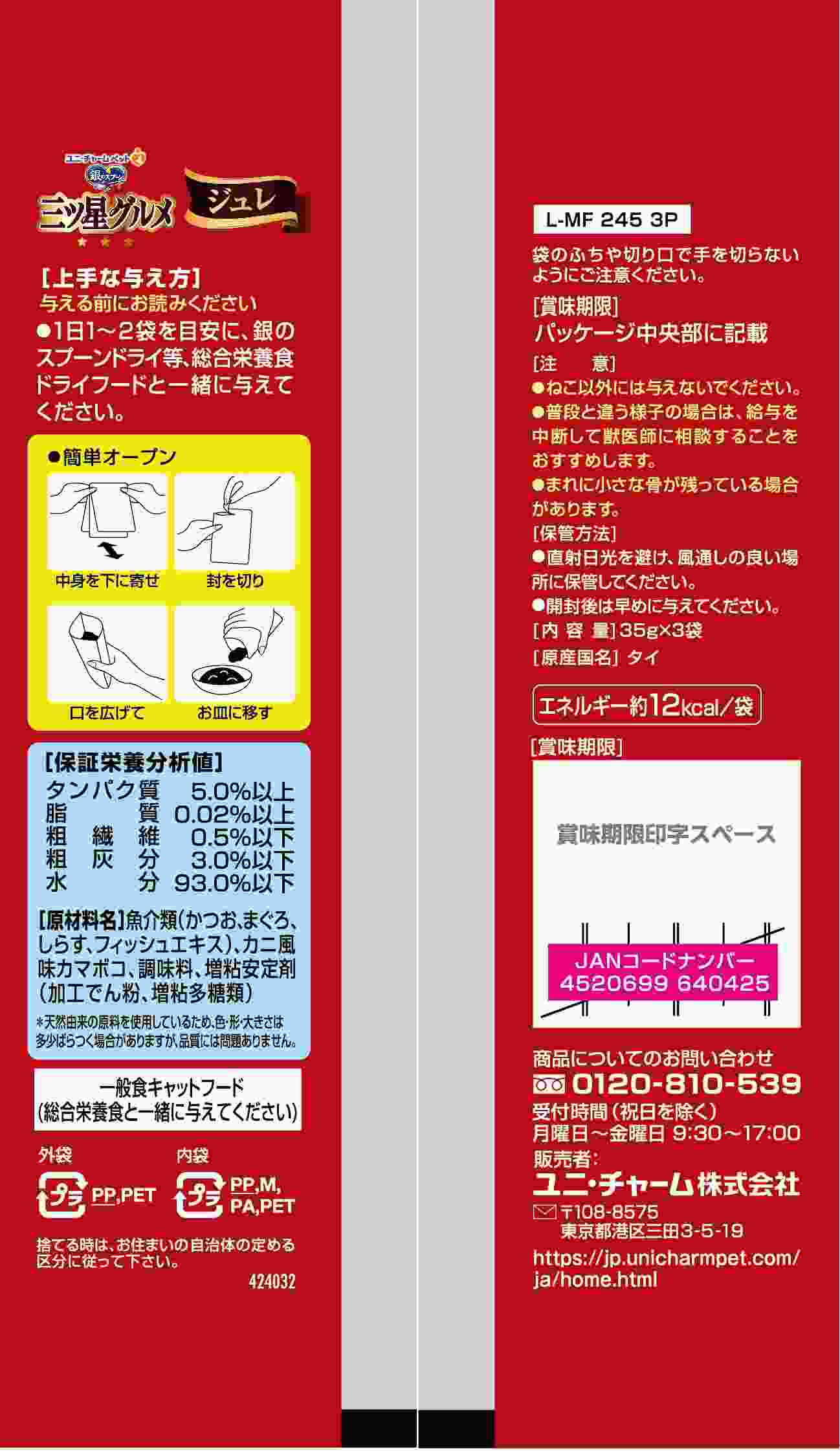 ・具と一緒に味わう贅沢な美味しさ ・お魚の旨みがたっぷりなとろけるジュレが、お魚の身とからんで一緒に食べやすく、贅沢なおいしさを実現 ・3袋入り