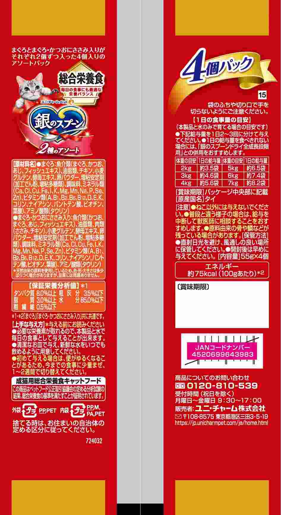 ・たっぷりの身とうまみで抜群のおいしさを実現 ・ねこが大好きなやわらかゼリータイプ ・人気の高い2フレーバーがそれぞれ2個ずつ入った4個入りのアソートパック ・毎日の食事にも最適な栄養バランスの総合栄養食