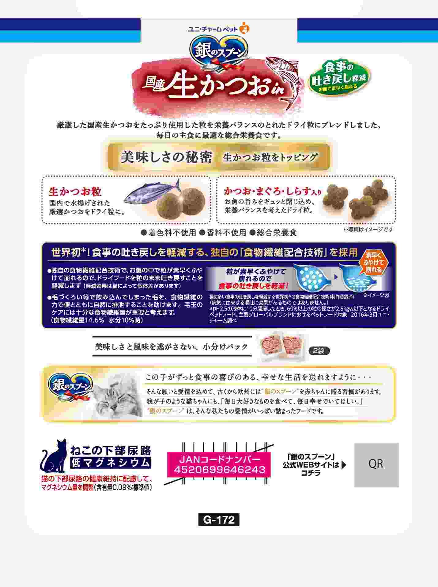 【3月31日終売予定】銀のスプーン 国産生かつおin食事の吐き戻し軽減フード 海の幸ブレンド 650g