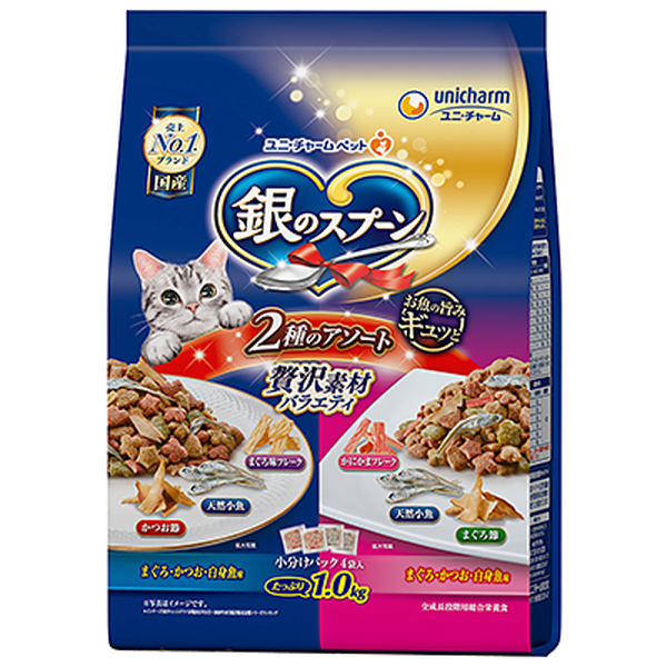 猫ちゃんが喜ぶお魚のおいしさがひと袋に2種類詰まったアソートタイプ