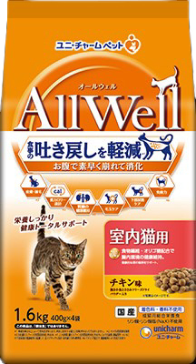 ※肥満が気になる猫用は、AllWell室内猫用比 約15kcal減/100g