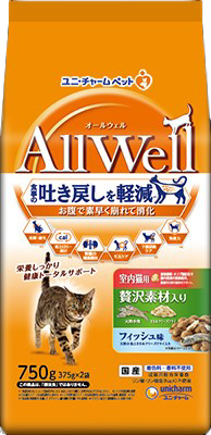 ※肥満が気になる猫用は、AllWell室内猫用比 約15kcal減/100g