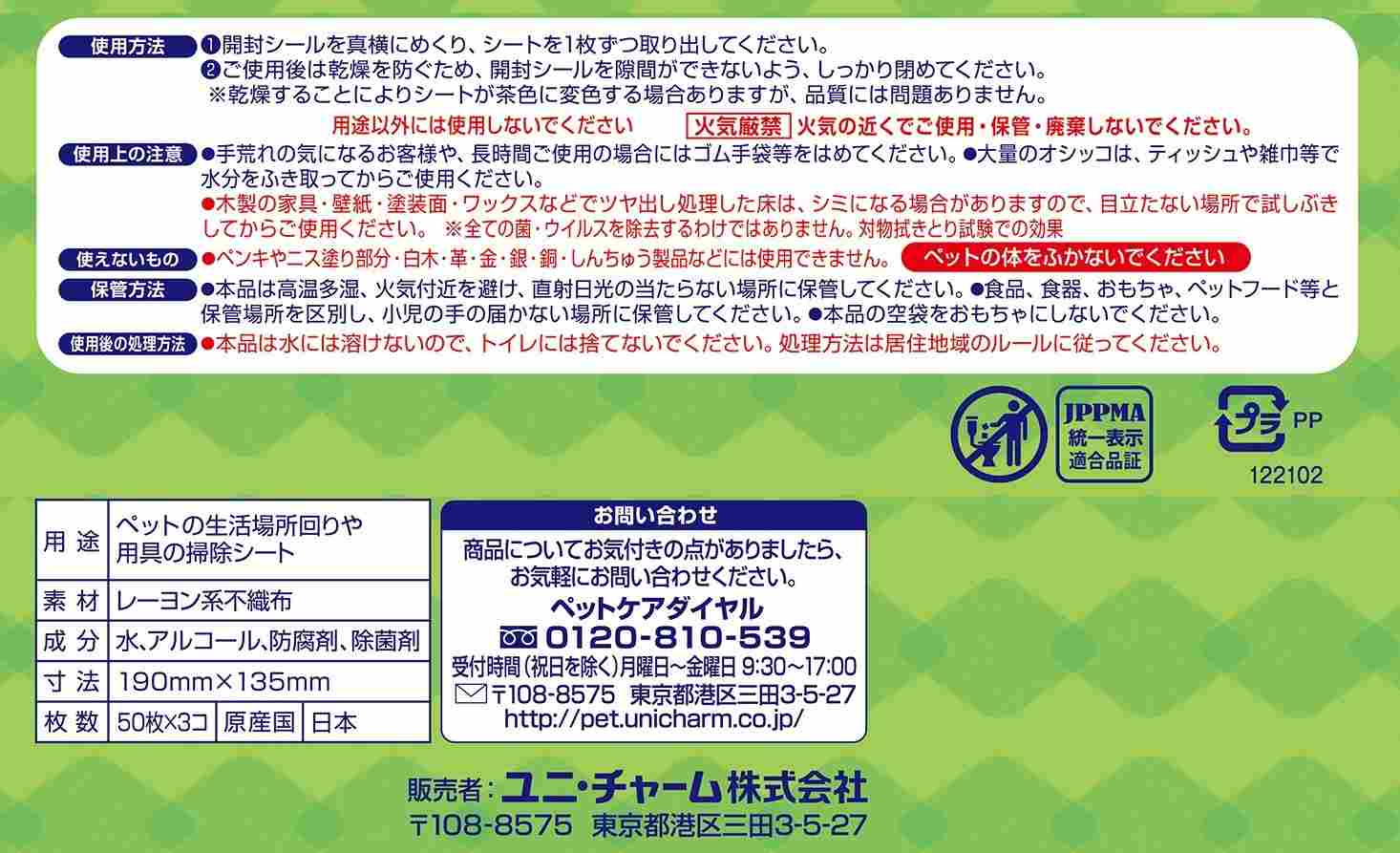 デオクリーン オシッコ汚れおそうじウェットティッシュ 50枚 3個