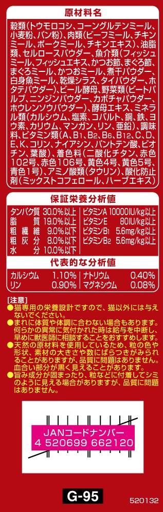 ・猫ちゃんが喜ぶお魚のおいしさがひと箱に4種類詰まった贅沢な逸品 ・カリッと食感の粒が入って、色々な食感が楽しめます。 ・毛づくろい等で飲み込んでしまった毛の排泄を助けるために、食物繊維を配合 ・猫の下部尿路の健康維持に配慮して、マグネシウム量を調整(含有量:0.08%:標準値) ・おいしさと豊かな風味を逃さない、食べきり小分けパック20g(標準)×10袋