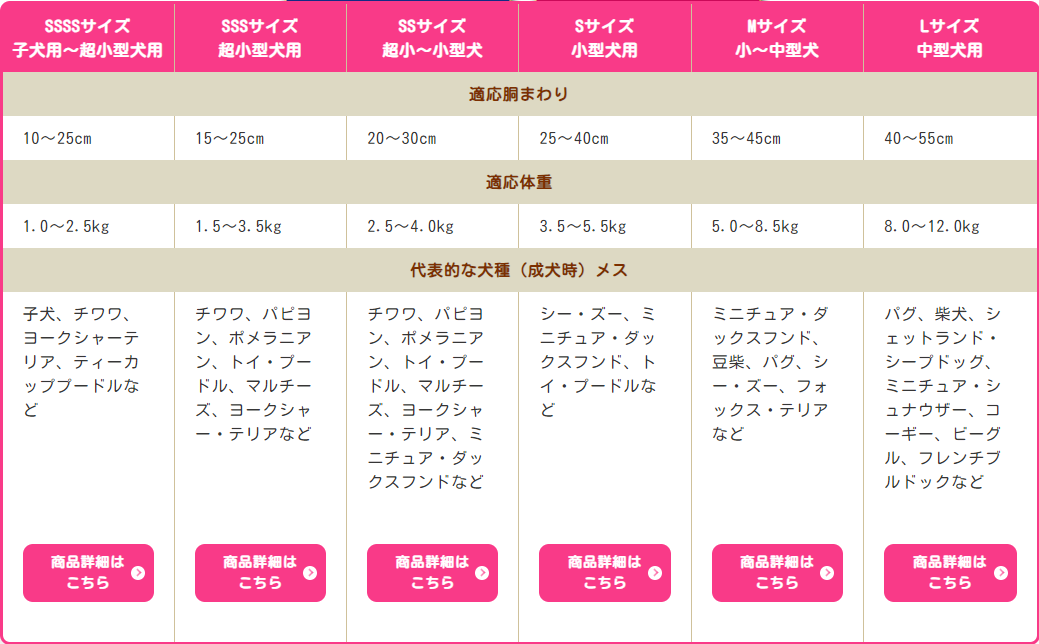 ※愛犬の成長度合い、体型によりサイズが異なる場合がございます。