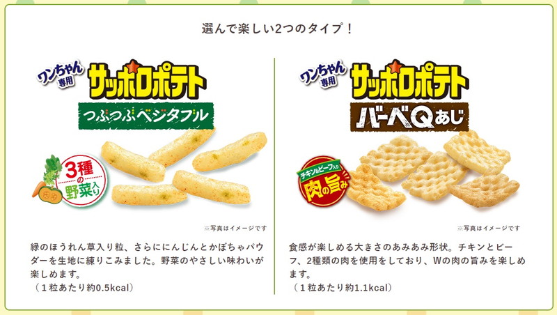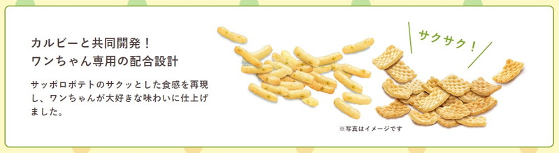 サクッとした食感とお肉の旨みが楽しめるワンちゃん専用サッポロポテト バーベQあじ チーズ味です。