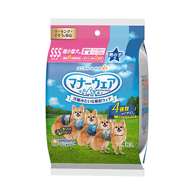 ◆「マナーウェア 男の子用」は、マーキング・そそうにも安心、洋服みたいな吸収ウェアです ◆ お出かけ・お部屋でのマーキング・そそうに!旅行、ドライブ、お散歩に ◆ 洋服感覚、4種のおしゃれなデザイン ◆「くるっと巻くだけスリムフィット形状」で、簡単装着&嫌がらない ◆「やわらか全面通気シート」で、お肌さらさら ◆「ぐるっとぴたりギャザー」で、モレ安心 ◆「安心スリム吸収体」で、6時間分のおしっこを吸収 ※健康なワンちゃんの6時間の平均おしっこ量を参考(ワンちゃんのおしっこ量には個体差があります)