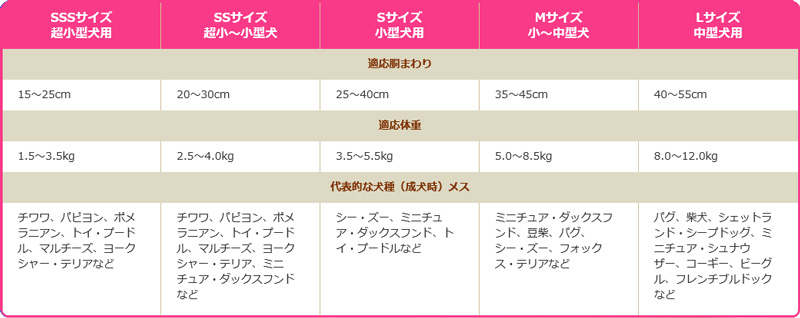 ※愛犬の成長度合い、体型によりサイズが異なる場合がございます。