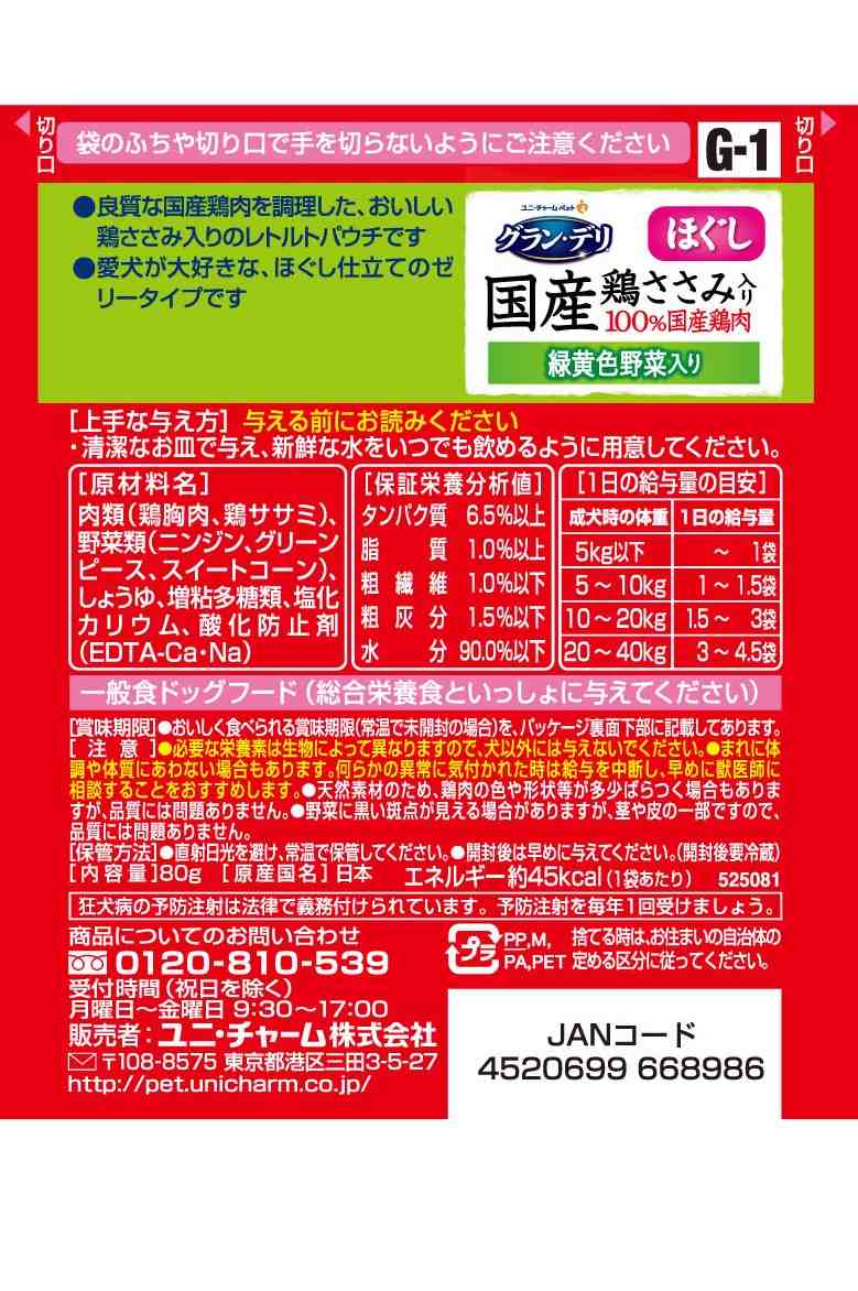 グラン・デリ 国産鶏ささみパウチほぐし成犬用緑黄色野菜入り 80g