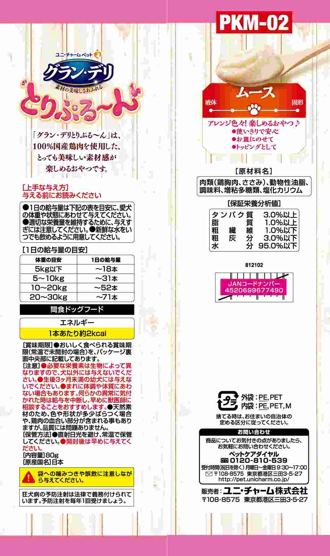 肉類(鶏胸肉、ささみ)、動物性油脂、調味料、増粘多糖類、塩化カリウム