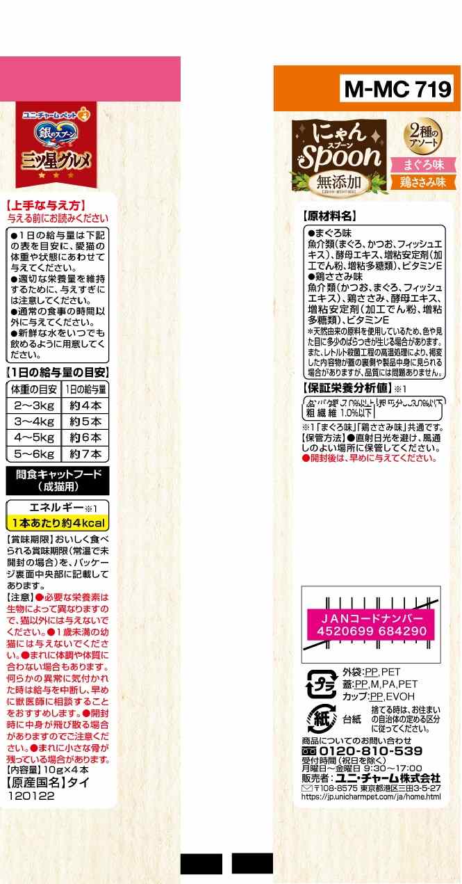 銀のスプーン 三ツ星グルメ おやつにゃんspoon無添加2種のアソートまぐろ&鶏ささみ味 40g