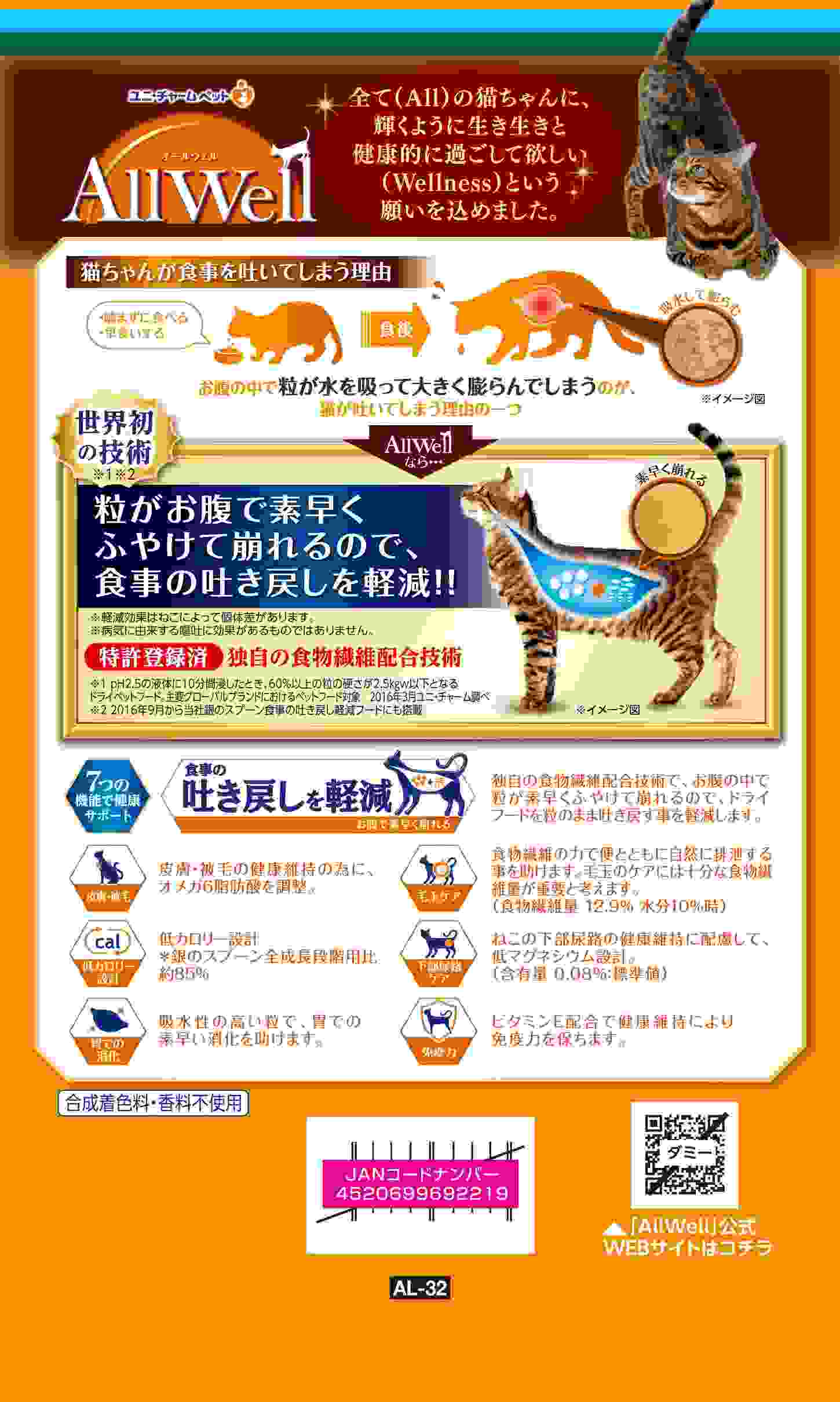 ・食事の吐き戻し軽減を中心とした7つの機能で健康サポート。・マリーゴールドミール由来のルテイン含有。・猫が大好きなフィッシュの旨みが詰まった粒に、挽き小魚と微粉砕したささみフリーズドライをまぶした高い嗜好性。 ・合成着色料・香料不使用。
