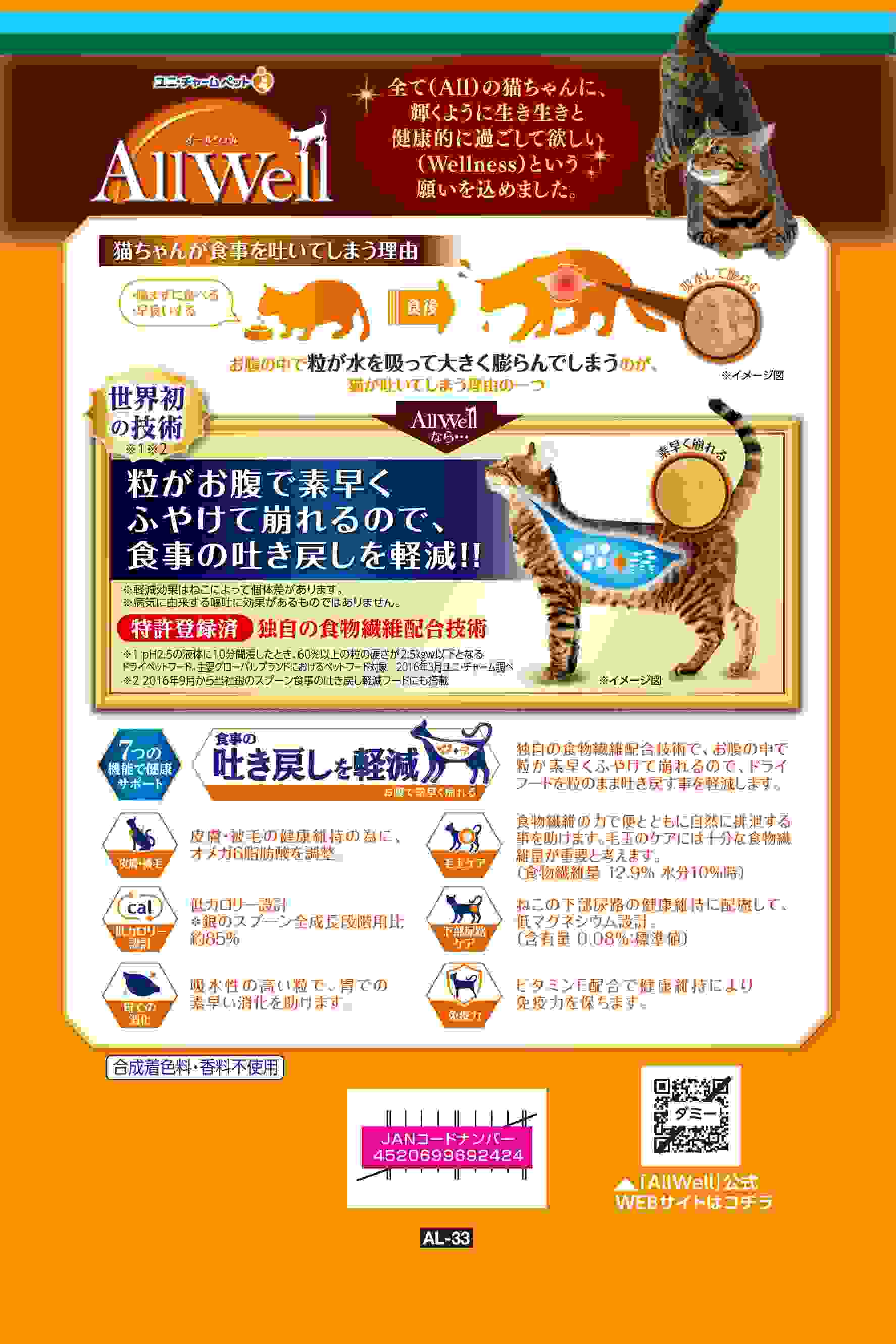 ・食事の吐き戻し軽減を中心とした7つの機能で健康サポート。・マリーゴールドミール由来のルテイン含有。・猫が大好きなフィッシュの旨みが詰まった粒に、挽き小魚と微粉砕したささみフリーズドライをまぶした高い嗜好性。 ・合成着色料・香料不使用。