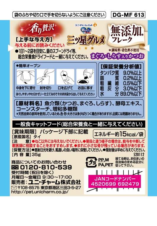 ●ねこ以外には与えないでください。●普段と違う様子の場合は、給与を中断して獣医師に相談することをおすすめします。●まれに小さな骨が残っている場合があります。
