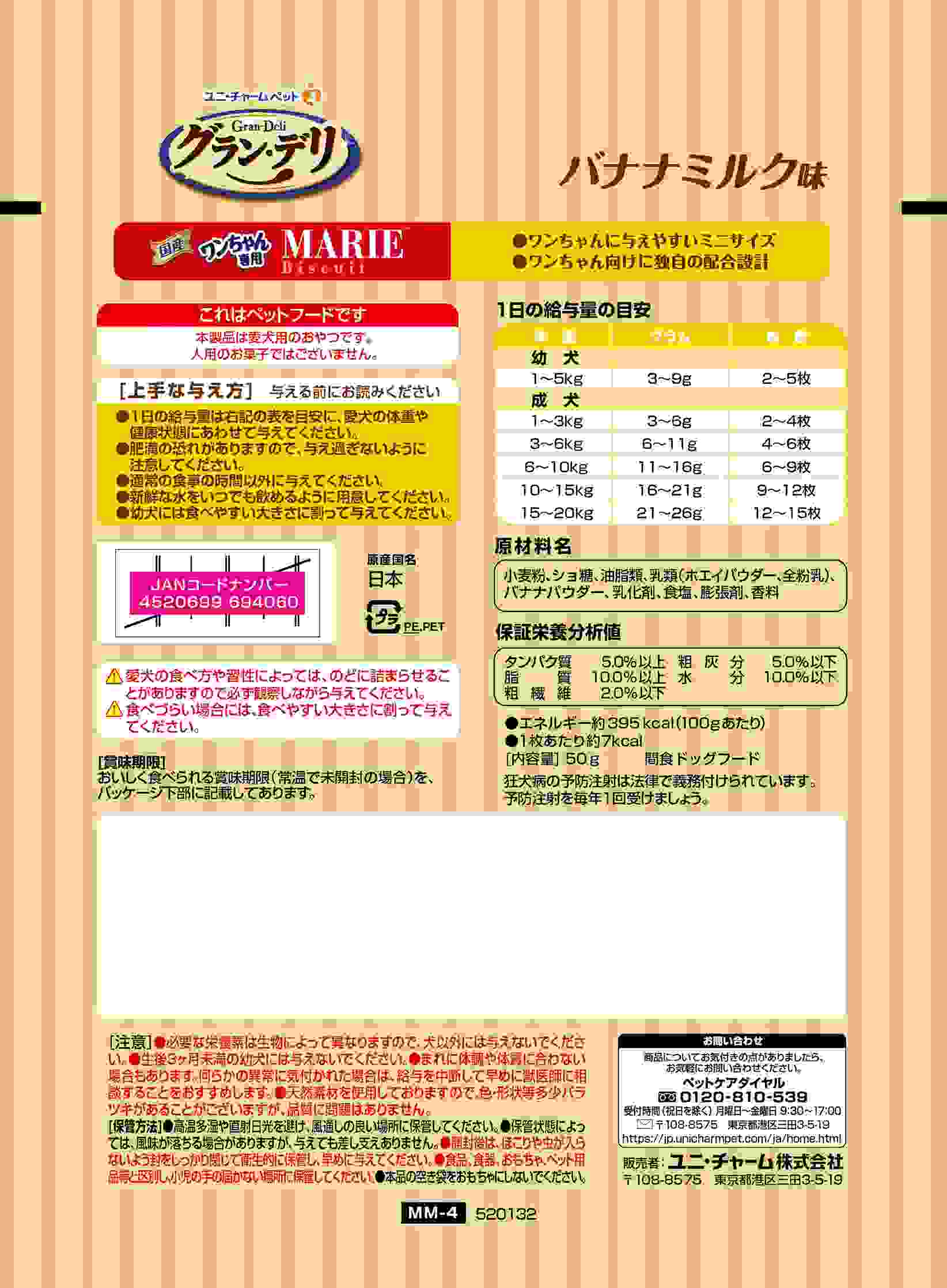 グラン・デリ ワンちゃん専用マリービスケット バナナミルク味 50g