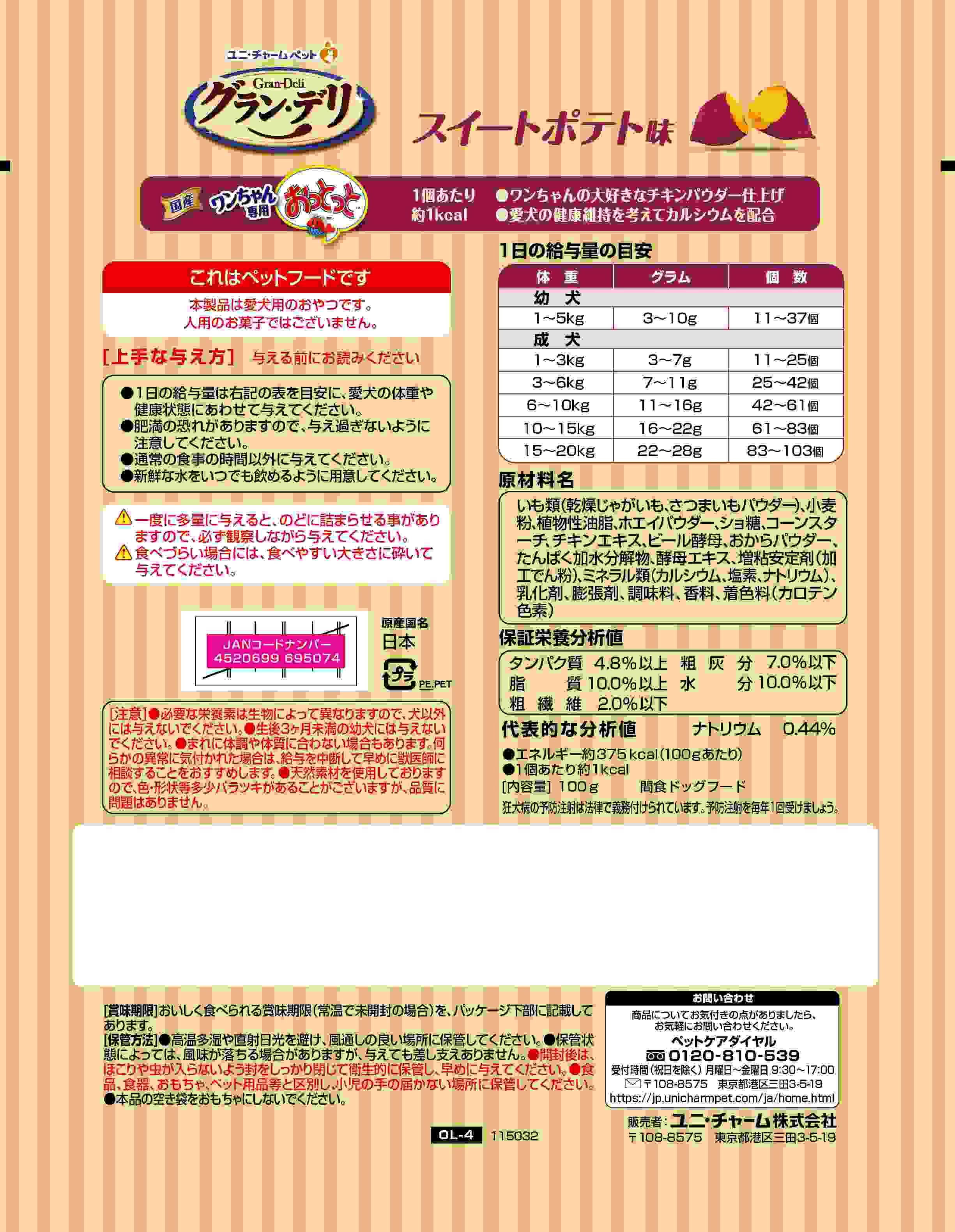 グラン・デリ ワンちゃん専用おっとっと スイートポテト味 100g