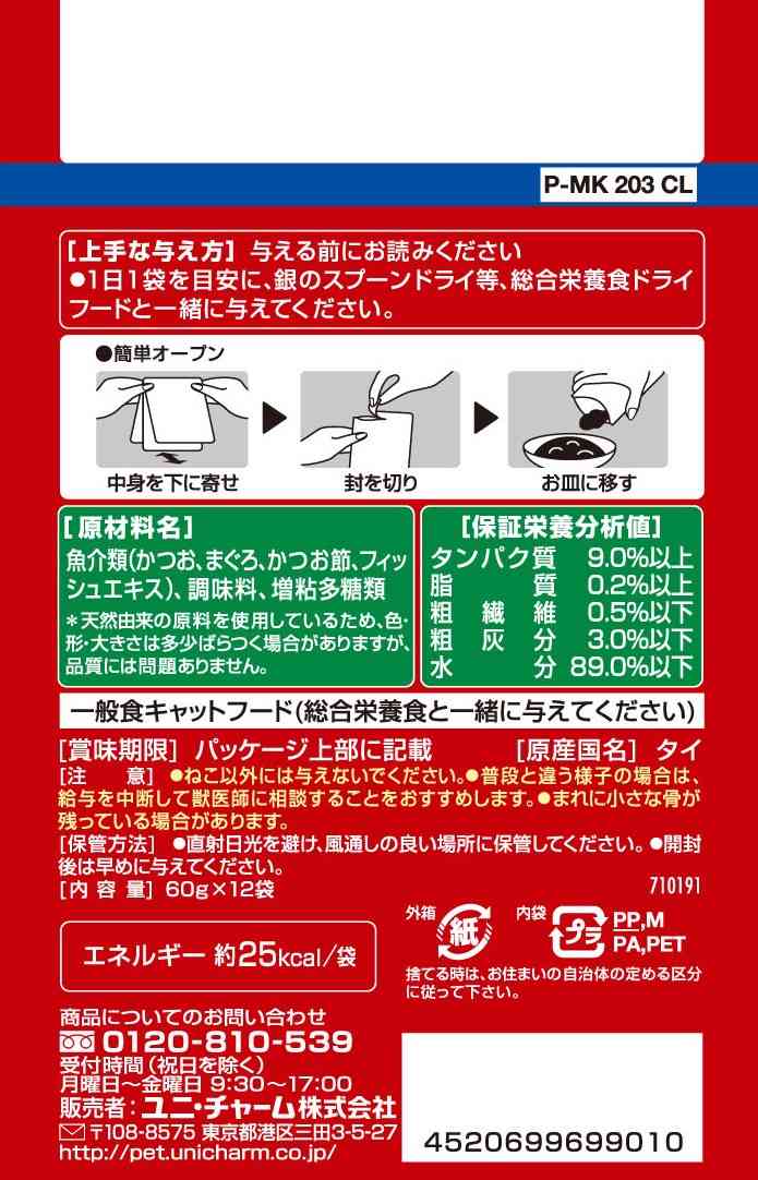 魚介類(かつお、まぐろ、かつお節、フィッシュエキス)、調味料、増粘多糖類※天然由来の原料を使用しているため、色・形・大きさは多少ばらつく場合がありますが、品質には問題ありません。