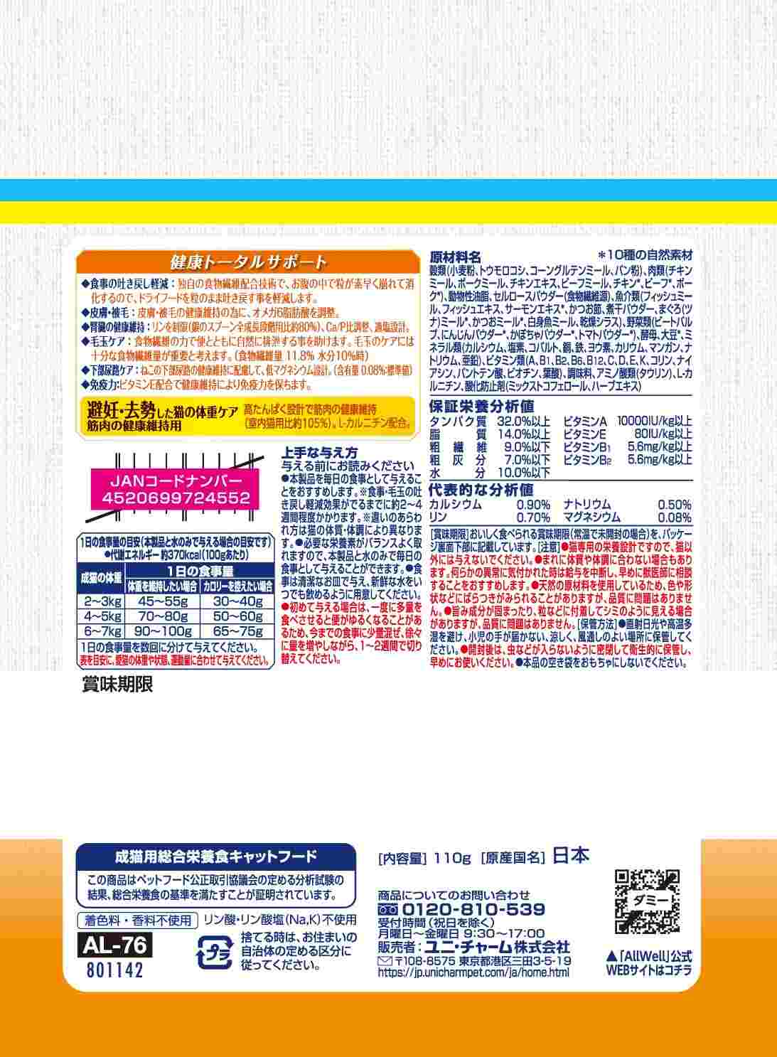使用上の注意●猫専用の栄養設計ですので、猫以外には与えないでください。●まれに体質や体調に合わない場合もあります。何らかの異常に気付かれた時は給与を中断し、早めに獣医師に相談することをおすすめします。●天然の原材料を使用しているため、色や形状などにばらつきがみられることがありますが、品質に問題はありません。●旨み成分が固まったり、粒などに付着してシミのように見える場合がありますが、品質に問題はありません。