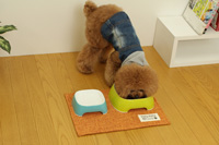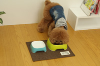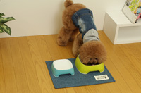 ランチョンマットを敷くと床が汚れるのを防ぎます。後片付けはゴミ箱の上で飛び散ったエサを払うだけ。水をはじく加工だからこぼれた水は拭くだけでお手入れできます。生地がおしゃれだから部屋の雰囲気も良くなります ♪