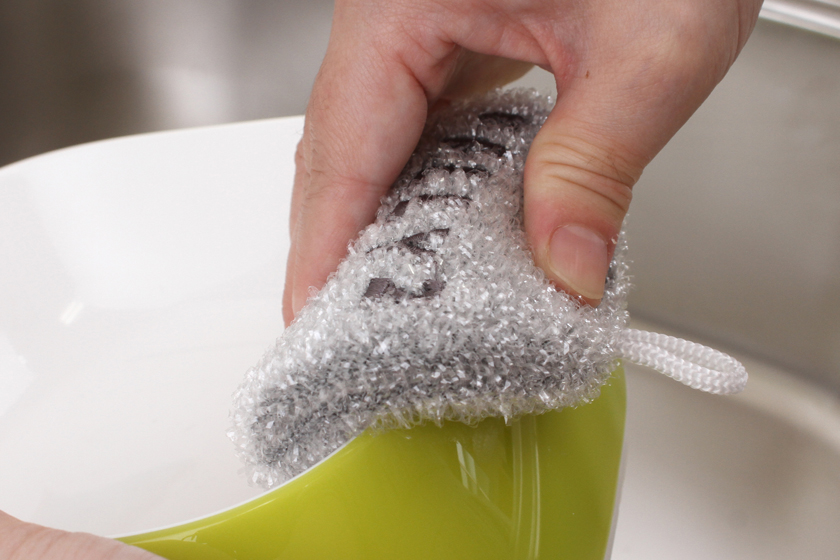 この食器洗いは洗剤なしでもしっかりヌメリを落とします。