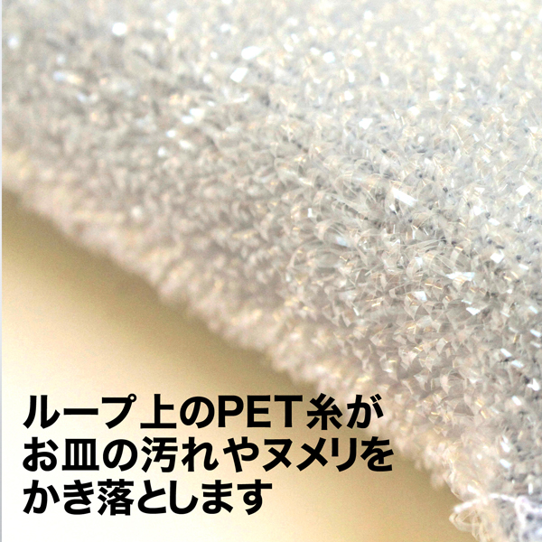 わんちゃん・ねこちゃんがごはんを食べるとき、完食してもらえるとやっぱり嬉しいですよね。お皿までぺろぺろしてくれるから、だから洗剤はできるだけ使いたくない。この食器洗いは洗剤なしでもしっかりヌメリを落とします。スポンジが使いやすい大きさだからボウルがくるくると洗えて食器洗いが楽しくなりますよ♪● ループ状の糸が唾液のヌメリをしっかり取る● 洗いやすい丸型スポンジ● 便利な吊りヒモ付き
