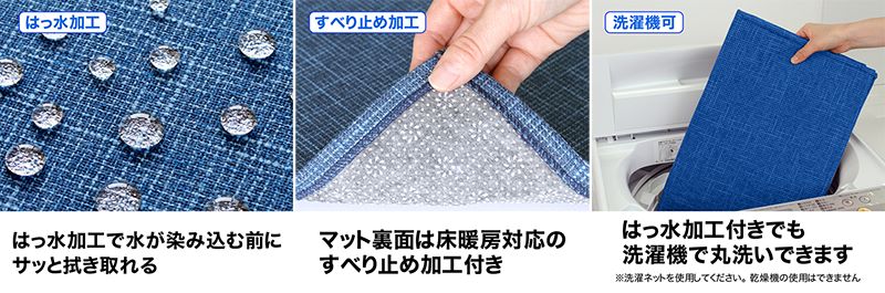 ●表面:ポリエステル100%(はっ水加工) ●中芯:ポリウレタンフォーム ●裏面:すべりにくい加工(PVC)