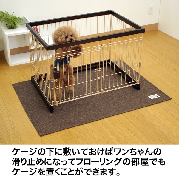 ケージをそのまま床に置くとキズや汚れの原因になります。このマットは大きめサイズだからしっかり床を守ります!水をはじく加工だから普段はこぼれた水やおしっこを拭くだけでお手入れできます。生地がおしゃれだから部屋の雰囲気も良くなる ♪【普段のお手入れ方法】普段は飛び散ったおしっこをタオルなどで拭き取るだけ。汚れが気になってきたら洗濯機で洗濯できます。(洗濯ネットを使用してください)生地がフラットだから掃除機や粘着クリーナーで簡単に毛やゴミがとれます。● はっ水加工● 洗濯機で洗えます(洗濯ネット使用)●床暖房対応● 裏面すべりにくい加工付き