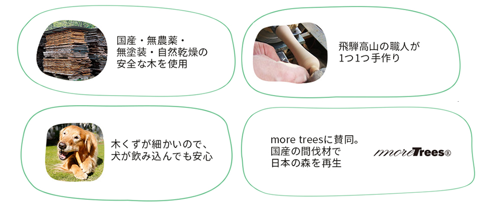 木の硬さ:「硬め」 噛む力が強い犬におすすめです。