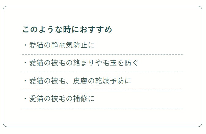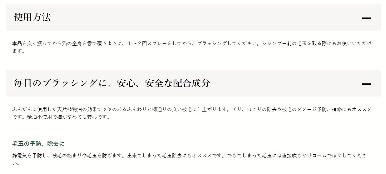 日々のブラッシングやシャンプー前後のお手入れにおススメな猫用グルーミングスプレーです。