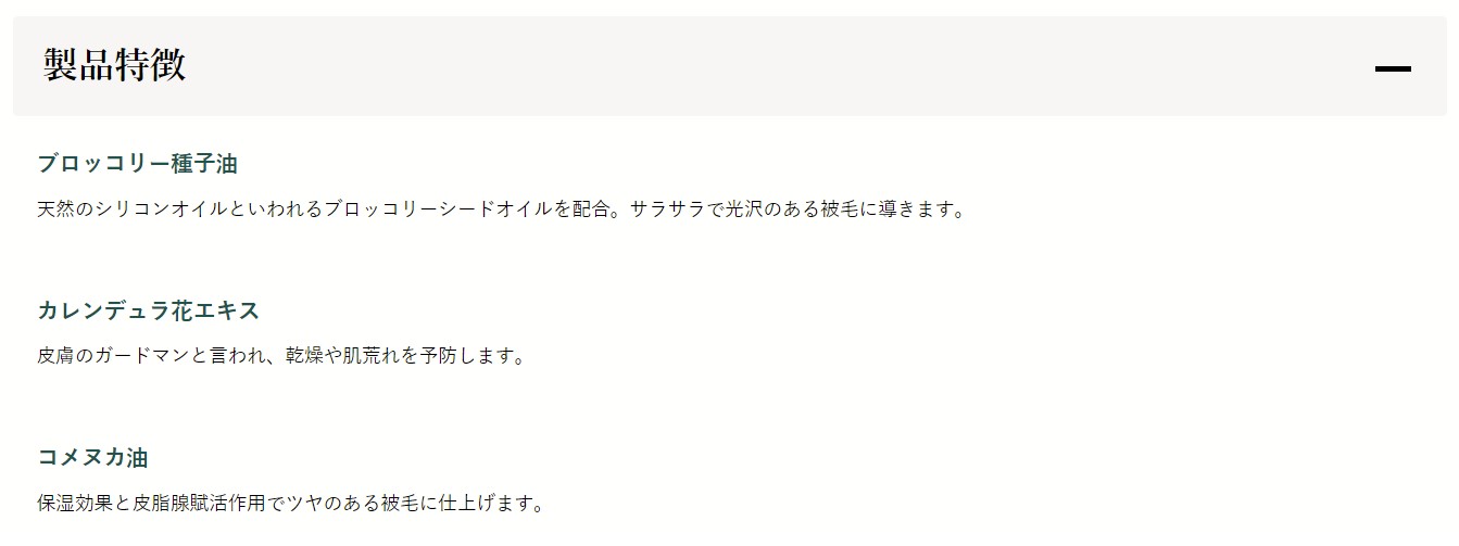 ふんだんに使用した天然植物油の効果で健康な被毛と皮膚へ