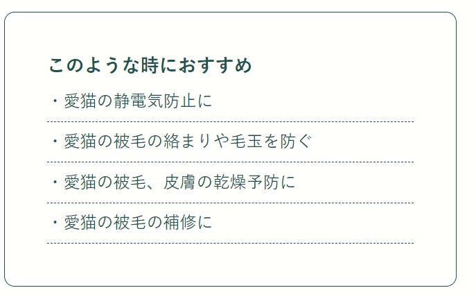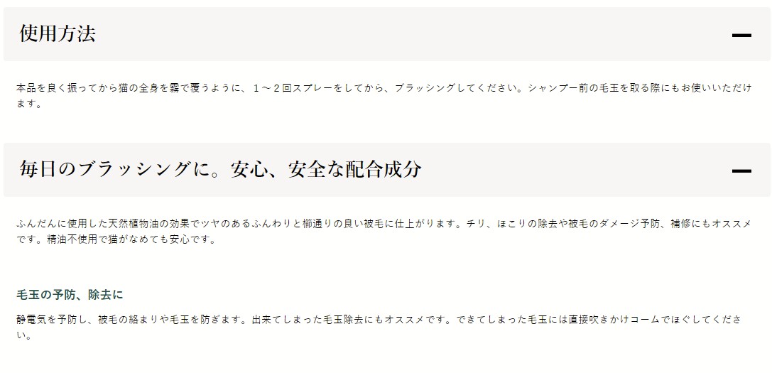 日々のブラッシングやシャンプー前後のお手入れにおススメな猫用グルーミングスプレーです。