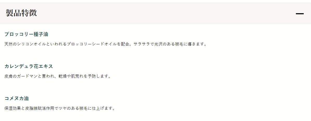 ふんだんに使用した天然植物油の効果で健康な被毛と皮膚へ