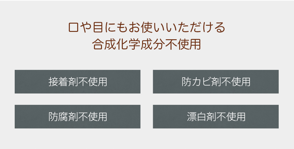 ● 防腐剤や接着剤不使用などの合成化学成分不使用
