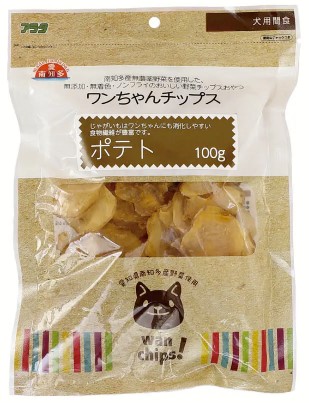 <原材料> じゃがいも(愛知県南知多産100%)<保証成分> 粗たんぱく質6.7%以上、粗脂肪0.7%以上、粗繊維7.1%以下、粗灰分6.5%以下、水分11.1%以下<熱量> 約 275 kcal/100g<原産国> 日本≪与え方≫・与える量はワンちゃんの大きさ、年齢、性別、体調、運動量、季節などの条件によって異なります。食べ残しなどの様子を見て調整してください。与え過ぎにご注意ください。・体調や体質に合わない場合もあります。何らかの異常に気付かれた際は与えるのをやめ、早めに獣医に相談することをお勧めいたします。・生後4か月未満の幼犬には与えないでください。≪保存方法≫・高温多湿を避け、冷暗所に保管してください。開封後は賞味期限にかかわらずお早めにご使用ください。・長期保存しますと変色するおそれがありますが、品質には問題ありません。