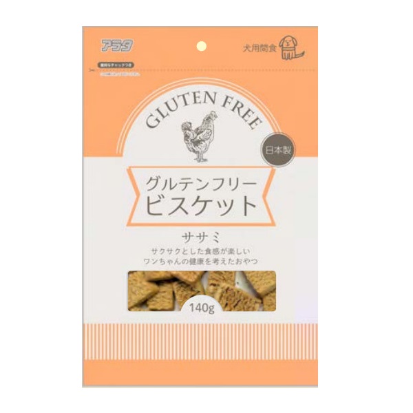 グルテンアレルギーに配慮して、小麦グルテンを使用していないビスケットです。 ワンちゃんの好きなささみを練り込みました。 1日に2、3回に分けておやつとして与えてください。 与え過ぎに注意してください。 与える量は、犬種、年齢、運動量、季節などによって異なりますので、食べ残しや便の様子などを見て調節してください。 新鮮な水を常に絶やさないようにしてください。 生後2ヶ月未満の幼犬には与えないでください。 体調や体質に合わない場合もあります。 何らかの異常に気付かれた時は、与えるのをやめ、早めに獣医師に相談することをおすすめします。