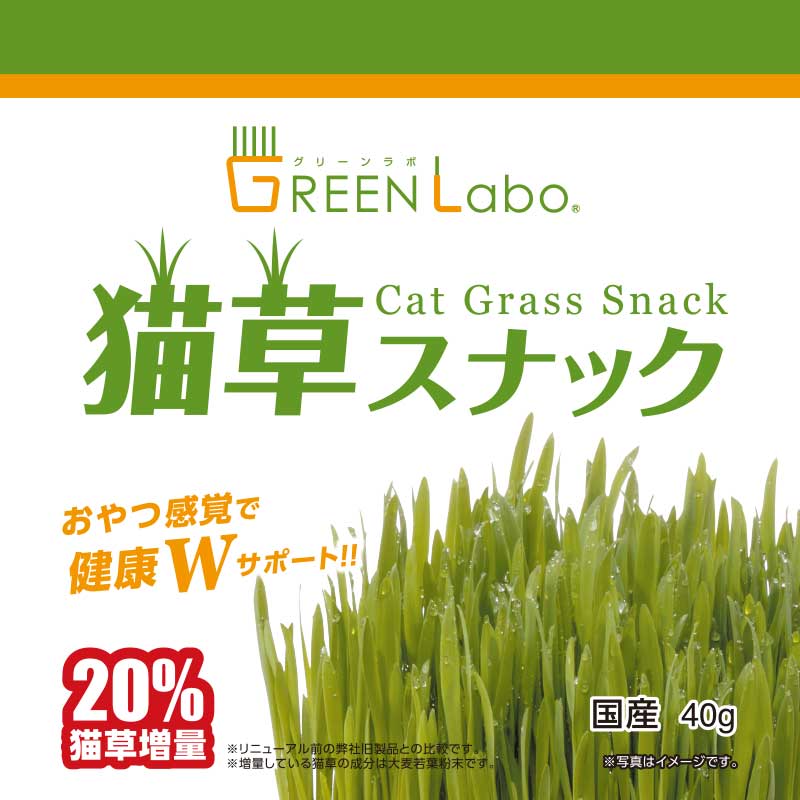 「猫草スナック」は、新鮮な国産大麦若葉(猫草)を配合した愛猫用おやつです。お腹の中にたまった毛玉(ヘアボール)をフン便と一緒に やさしく取り除き、愛猫の健康維持をサポートします。美味しい素材をたっぷり使用した、まぐろ(鮪)、かつお(鰹)、サーモン(鮭)の3種類。毎日のおやつに大麦若葉(食物繊維)と3種類の成分(植物性乳酸菌、コラーゲン、ビオチン)を配合することで、愛猫の健康維持と皮膚や艶やかな毛並みを身体の中からサポートします。