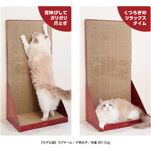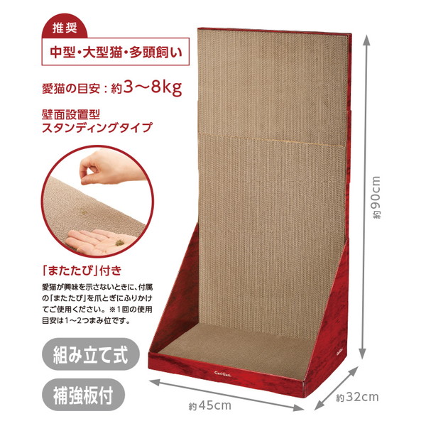 愛猫たちが最高にくつろげるように開発された、愛猫専用ウオール型スタンディングタイプの爪とぎです。