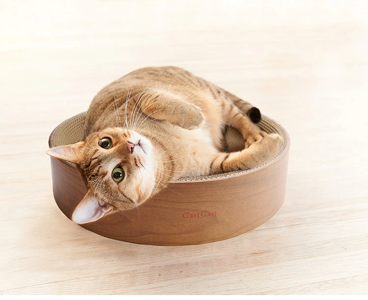 愛猫たちが丸くなって最高にくつろげるように開発された、愛猫専用お皿型クラウチングタイプの爪とぎです。 やさしいカーブが爪とぎはもちろん、くつろぐときもとっても気持ちいいカタチです。 猫との暮らしを素敵に彩るインテリアスタイルの木目調カラーをご用意しています。